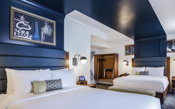 Superior 2X Queen City View Room With Breakfast - Feel the pulse of Vancouver in this Superior 2 Queen Beds room. Featuring city views, larger beds, and a spacious Marshall fridge. Designed with contemporary details, this room offers every modern amenity for a seamless stay in the heart of the Entertainment District such as bottled water, in room coffee, mini fridge and bathroom amenities including a blow dryer.